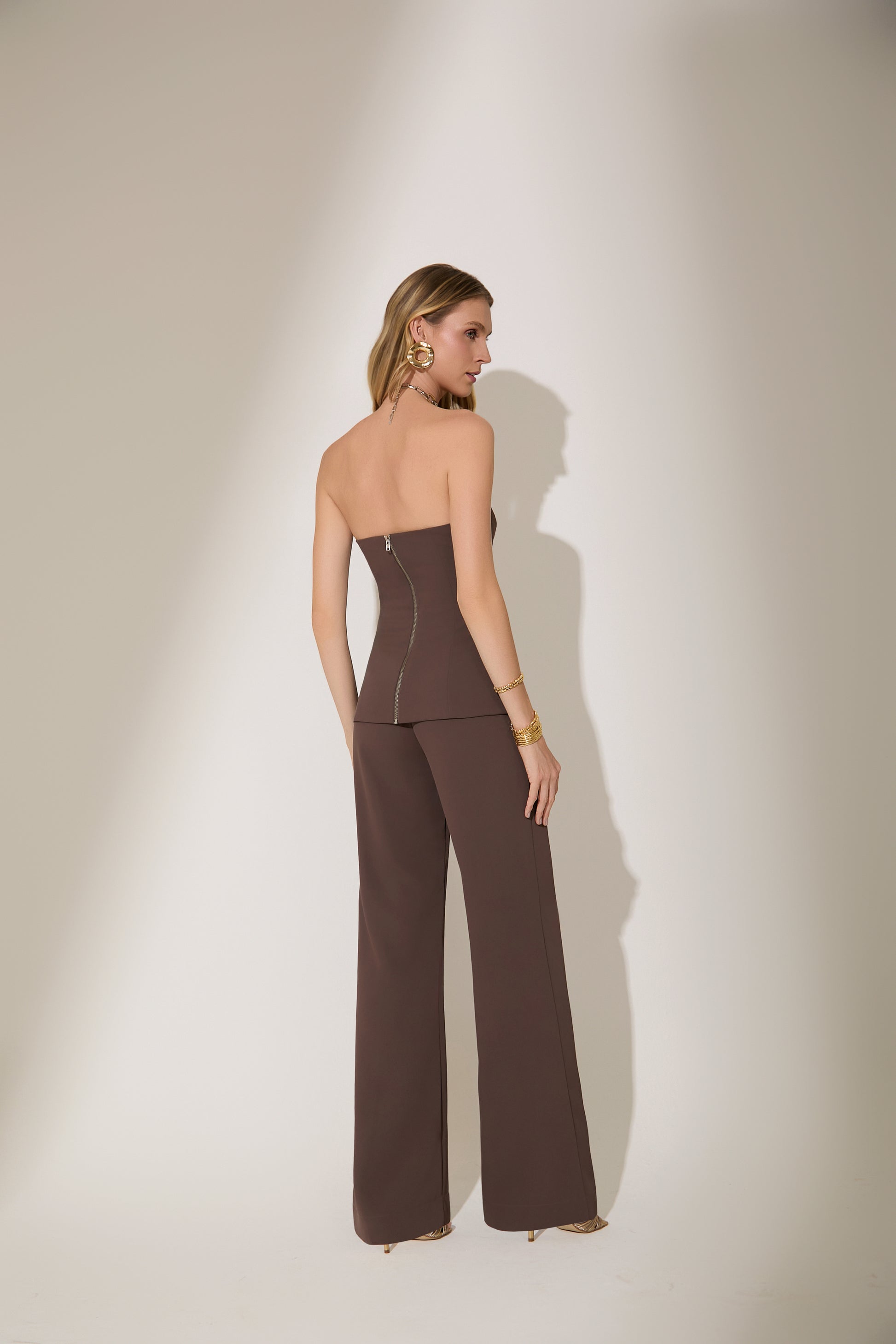 Corset tomara que caia com botões dourados decorativos. Sua estrutura realça a silhueta feminina, além de oferecer conforto e sustentação. Estruturado com barbatanas internas e zíper nas costas. Possui abertura assimétrica na barra. Os botões dourados trazem elegância e modernidade ao corset que é uma peça versátil, que pode ser usada tanto sozinha, quanto por cima de uma camisa, por exemplo, garantindo um visual mais cool e estiloso.